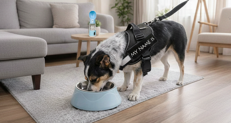 קולקציית האכלה חכמה לכלבים עם קערות, בקבוקים ופתרונות ניידים שמבטיחים נוחות, היגיינה וארוחות יומיומיות מסודרות.